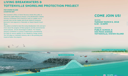 The Governor’s Office of Storm Recovery (GOSR) invites the public to attend the eighth Rebuild by Design Living Breakwaters Citizens Advisory Committee (CAC) meeting to hear an update and to provide input.