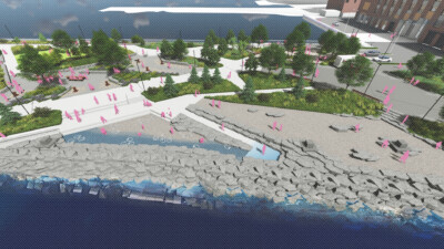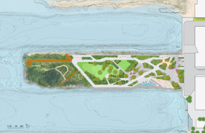 The resilient waterfront park includes playful pockets that serve as a gathering space, dining area, and outdoor classroom; a tide pool area; three connected lawns; and boardwalks. The design also references regional ecosystems, incorporates an intertidal shoreline experience, and prioritizes a native plant palette that preserves and enhances biodiversity. By incorporating new strategies for managed erosion, the natural emergent habitat at the end of the pier will adapt and transform with rising sea levels. The creative reuse of materials found on the site honor the pier’s industrial past and lower the project’s carbon footprint. Pier 6 builds on New York City Economic Development Corporation’s (NYCEDC’s) investments in its industrial assets by providing a public “front porch” to the MADE Campus open space and waterfront access for the Sunset Park community.