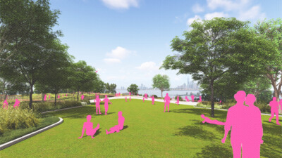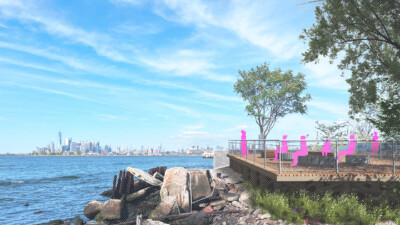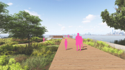 Bush Terminal – Pier 6 transforms a deteriorated solid-fill pier on the Sunset Park waterfront into an engaging new open space for neighborhood residents and tenants of the nearby MADE Bush Terminal Campus, opening the waterfront to the surrounding community for the first time in decades. Once a busy industrial hub, Pier 6 has gone unused for years. Today, an emergent forest ecosystem has taken root on the pier, scattered with industrial remains and opening up to expansive views of New York Harbor and Manhattan. This $25 million construction investment preserves the emergent, self-seeded forest at the end of the pier and creates resilient, engaging spaces throughout the site, providing safe waterfront access and magnifying a rich industrial and ecological history.